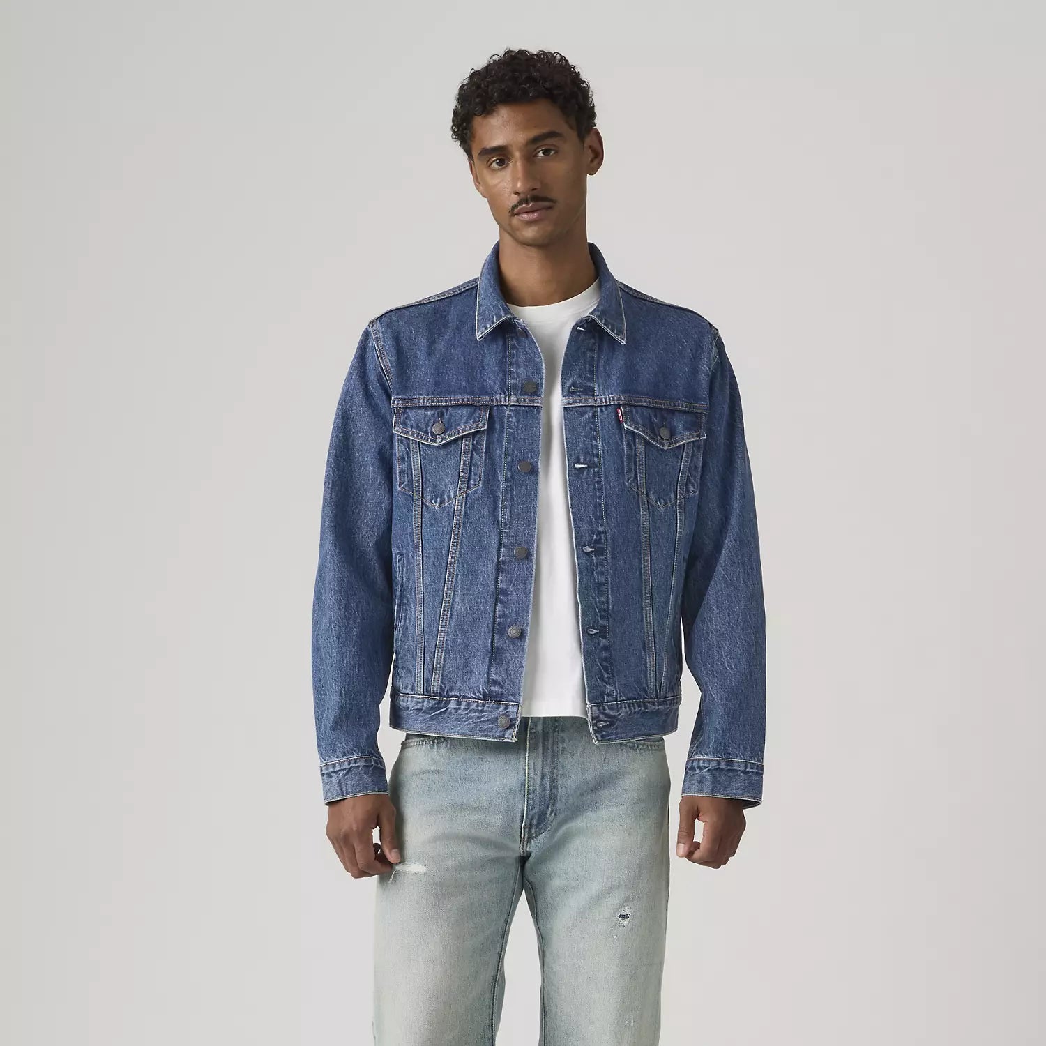 La Levi's Trucker Jacket è l'iconica giacca in denim del brand americano, un modello intramontabile nato per attraversare stagioni e tendenze senza perdere identità. Strutturata ma versatile, è pensata per completare outfit casual con jeans, chino o pantaloni cargo, mantenendo tutto il carattere autentico Levi's.