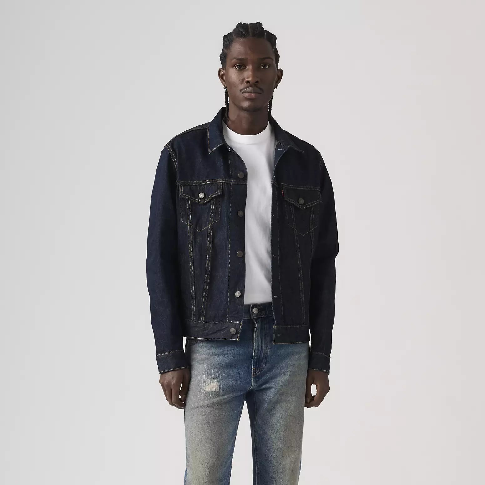 La Levi's Trucker Jacket è l'iconica giacca in denim del brand americano, un modello intramontabile nato per attraversare stagioni e tendenze senza perdere identità. Strutturata ma versatile, è pensata per completare outfit casual con jeans, chino o pantaloni cargo, mantenendo tutto il carattere autentico Levi's.