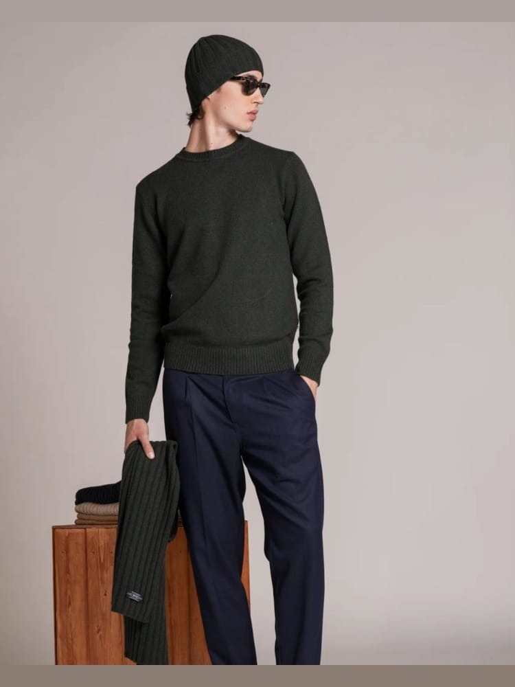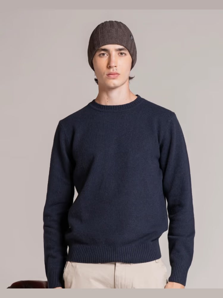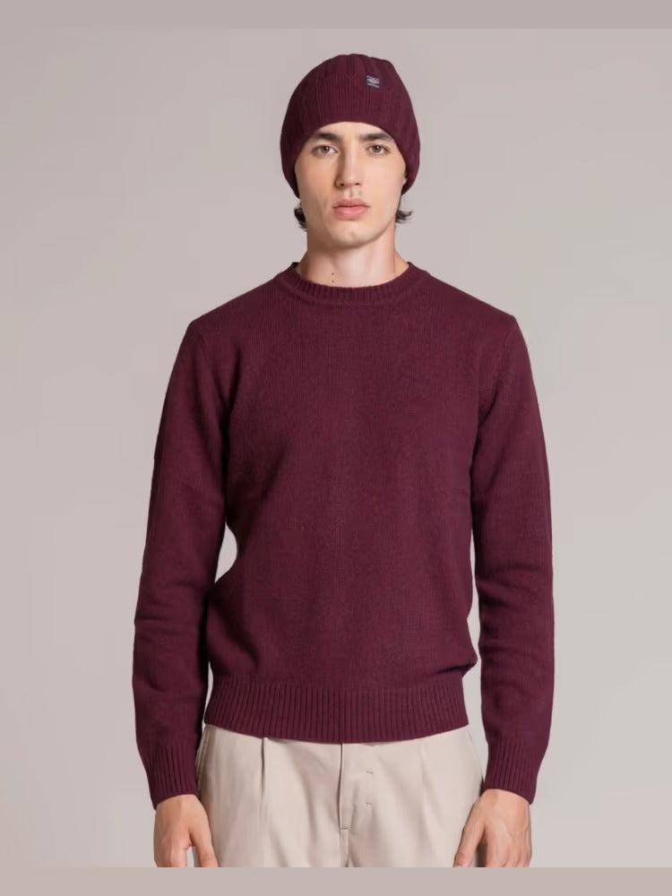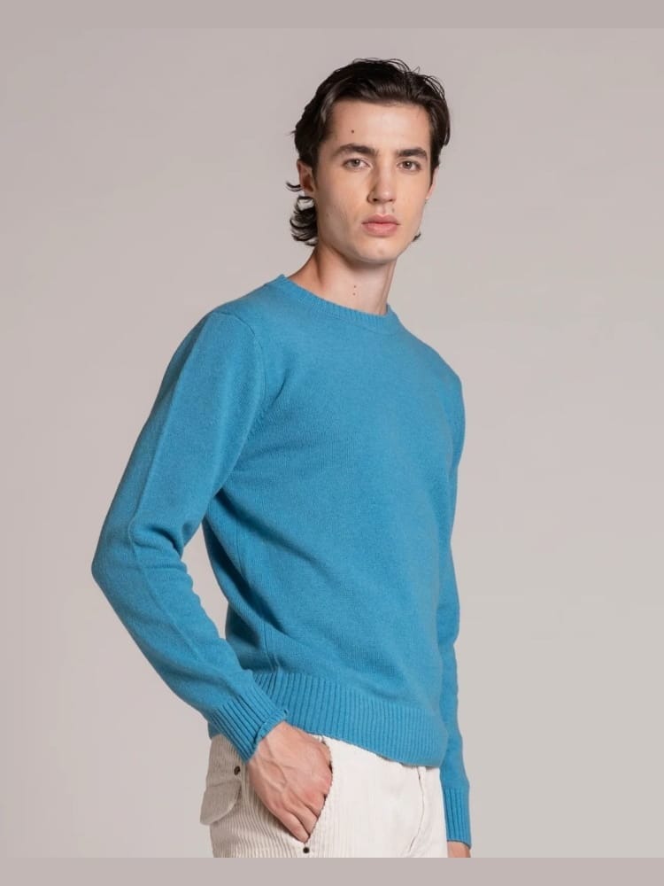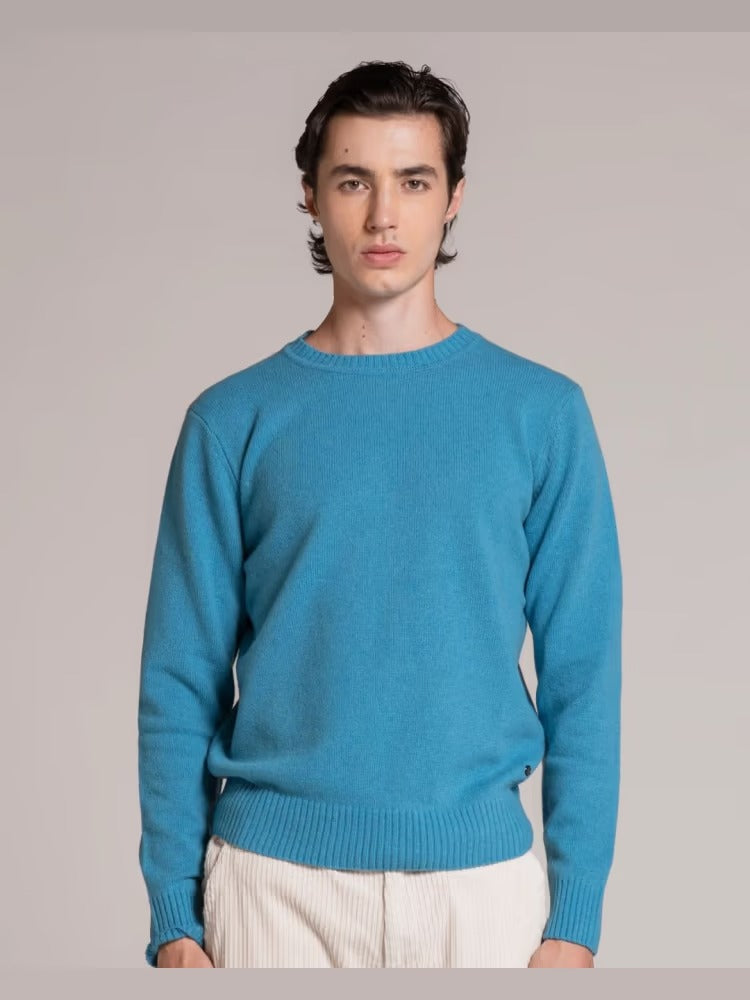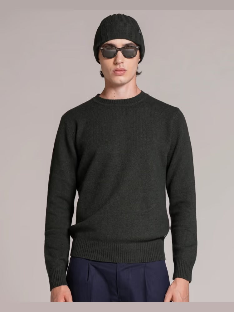 Maglione da uomo modello girocollo a manica lunga con bordi a costine, realizzato in misto lana di agnello